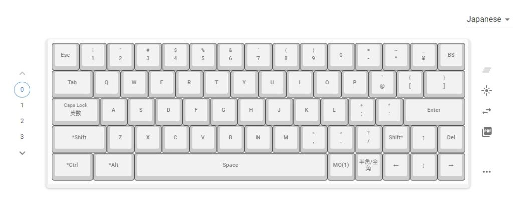 Minilaレイアウトなので、キーが揃ってないものがほとんどで選択肢は少ないです。